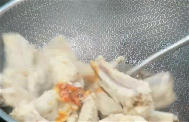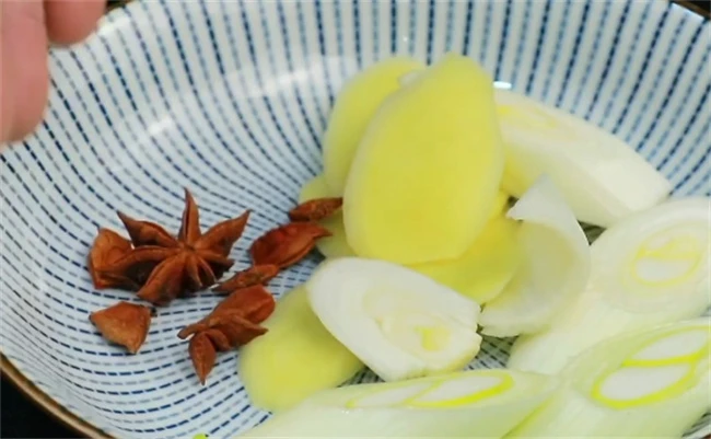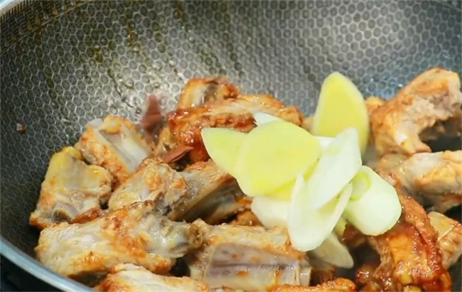 8.炒好后加入葱、姜、大料和醋继续翻炒。