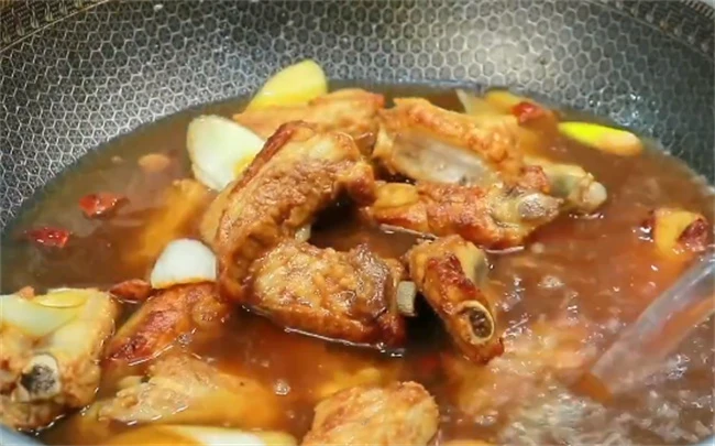 9.然后加入水和冰糖盖上锅盖煮半个小时即可,中途加入盐调味。