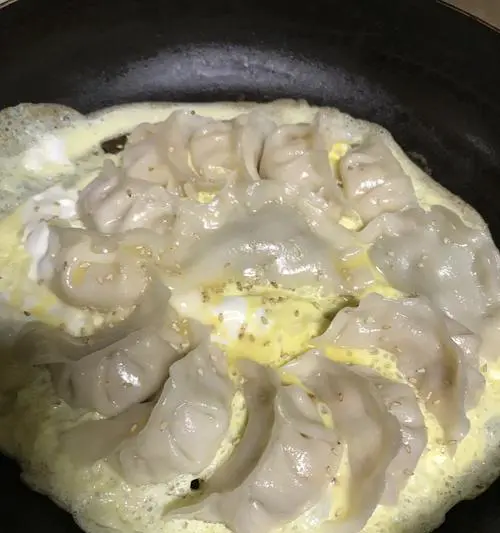 煎饺时需要先将饺子放入锅中,煎至底部金黄色后加入适量水,盖上锅盖煮至水蒸发为止。然后再将饺子继续煎至两面金黄色即可。