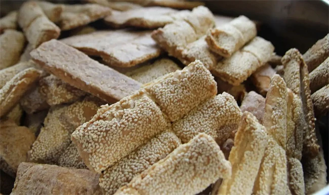西亭脆饼是通州的一种特色小吃,也是当地的一种比较受欢迎的零食,当地人喜欢在年节送礼的时候,准备一些西亭脆饼,制作好的西亭脆饼,非常的脆薄,吃起来口感爽脆,带着芝麻的清香,以及经过热油烹炸的油香味,西亭脆饼在当地有着悠久的制作历史,当地的老年人一般都会制作这种脆饼,牙口不好的人也可以吃西亭脆饼,这种小吃入口即化。