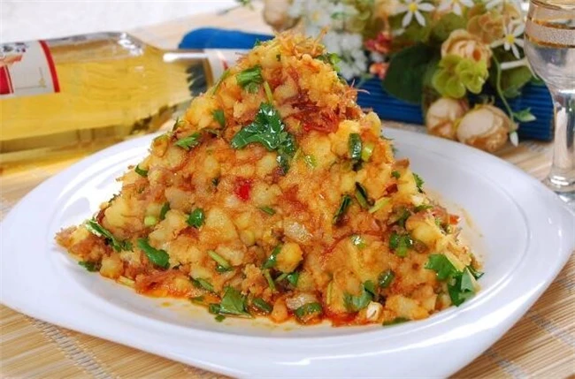 凉拌土豆泥的味道也是特别好的。挑选大小适中的土豆个子不要太大,因为不好蒸透。洗干净以后不用去皮,直接放在锅里面蒸半个小时。蒸熟的土豆,趁热把皮去掉,用勺子捣碎,不用捣的太细带一点小块儿更好。碗里面放点香葱,味极鲜,适量盐,一丢丢白糖和味精,如果吃辣的话,放上一点辣椒油,再放上点香菜,把料汁搅拌均匀。然后把料汁淋在土豆上,再搅拌均匀,让每块土豆都裹上料汁,味道特别好。