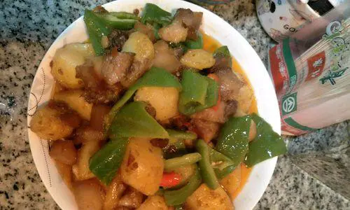 等土豆和五花肉烧煮至入口即化后,就可以出锅了。