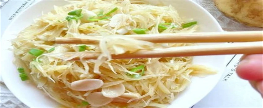 土豆丝配粉丝再吃的时候口感非常不错,制作方法也比较简单,首先要准备一些粉条,把粉条放在水里面煮软,然后放在清水里面泡一小会儿备用。粉条要掌握好火候,煮粉条的时候保持捏粉条,没有硬心的状态就可以了。