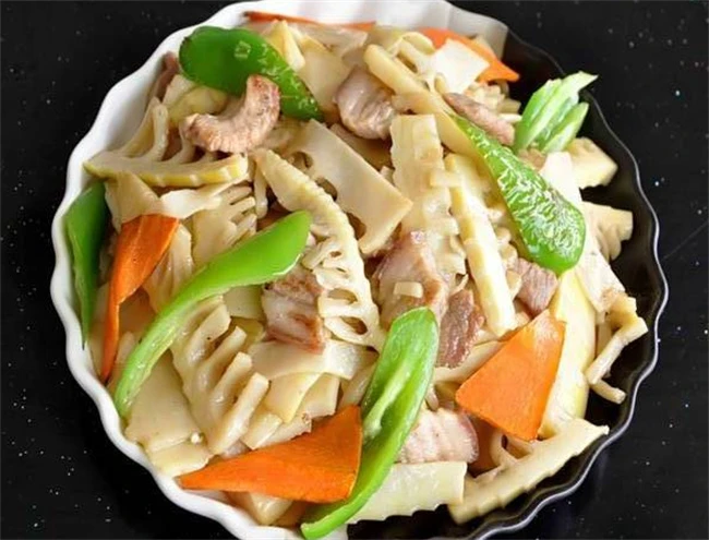 秋笋炒肉片:把秋笋去掉外皮切成片,再准备适量青椒红椒木耳配色,一把大蒜切成片,再加入适量姜片和葱段一块里脊肉切成片加入盐,葱姜抓拌均匀上劲,然后再加入适量淀粉,抓匀,锅里面油热之后把肉片下进去炒散。炒好的肉片放在盘子里面,备用锅里面再少烧一点油,放入葱姜蒜炒香,然后把秋笋以及配料都加进去,快速翻炒至段生,加入自己喜欢的调味料,然后再把肉片叫进去翻炒均匀,出锅的时候凝入适量水电粉即可。