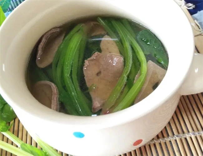 羊肝菠菜汤的补血效果也是特别好的,羊肝和菠菜的铁含量都非常高,对于缺铁性贫血有很好的改善效果,需要的食材有菠菜,羊肝,鸡蛋,适量姜片,盐一点油,把羊肝洗干净,切成片菠菜切成段,用开水烫一下,然后把羊肝和菠菜一同加上水,大火煮开,一个鸡蛋打散搅拌成均匀的蛋液淋入菠菜汤中。再加上适量盐调味知道简单有补血的盐干菠菜汤就做好了。这几款汤平时换着喝,能有效的预防贫血,对已经贫血的症状有很好的改善作用。