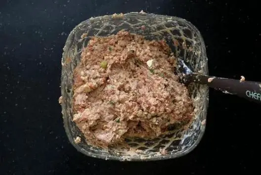 首先要准备一块猪肉,肥瘦相间的最为合适,先要把猪肉剁成肉末拿出半块豆腐直接用手捏碎。给豆腐当中放入各种调味料,首先要放入适量的小葱,但是如果不喜欢葱口味儿的人可以选择不放,另外还可以给碗中放入十三香,麻油生粉,搅拌均匀。