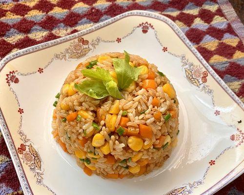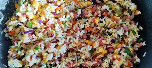 五彩炒饭制作完成啦!趁着热气,赶紧上桌享用吧!