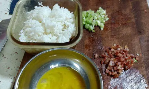 2.待油温适中后,将预处理好的米饭倒入锅中,快速翻炒。