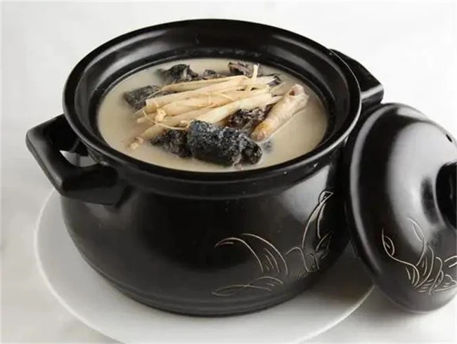 做乌鸡汤也特别简单,食材要选用新鲜的乌鸡市场上宰杀好,褪去毛之后带回家,准备适量的当归,黄芪,桂圆,党参,适量生姜片。一到家里面把乌鸡洗干净,剪掉脚趾甲和鸡的臀部。冷水下锅焯烫,几分钟煮出血沫,捞出来放在砂锅里面把药材清洗干净,连同姜片一起放到砂锅里面,多加一点水,盖上盖子,大火煮开。