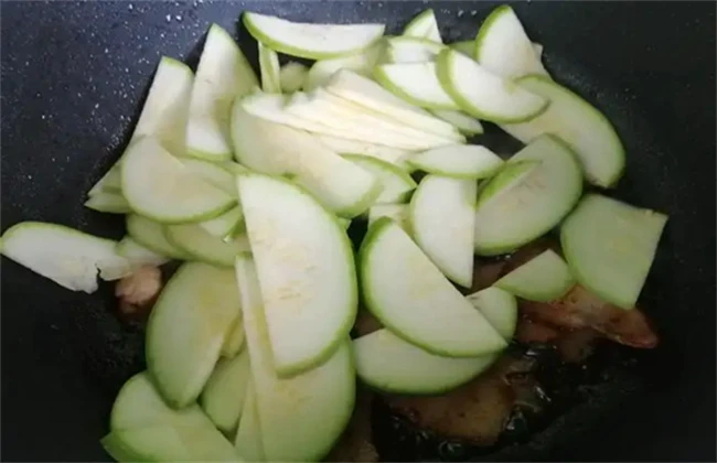 第四步下入西葫芦。瘦肉炒熟后,我们将切好片的西葫芦下入锅中,在翻炒的过程中,加入一些调料,例如,蚝油,生抽,盐等等。继续不停翻炒,直到西葫芦断生。