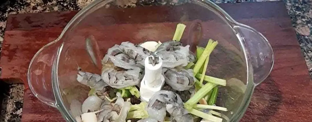 将馅料和虾仁混合