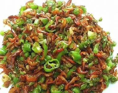 将锅烧热,加入适量油,待油热后放入虾米颗粒翻炒,直到颜色微变并散发出香味。然后将虾米捞出备用。