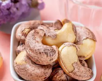 首先我们需要将腰果用清水冲洗干净,并在表面擦去多余的薄皮,待其晾干后备用。