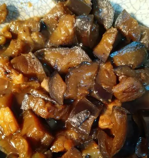 茄子是此道菜的另一主要配料,也需要切成小丁,以便于口感和美观。