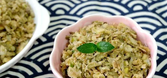 将槐花放置一段时间,待其稍微变凉后,可用刀将其切成细丝。在切丝时要掌握好刀势,快速而准确地切下,以免因时间过长而影响口感。切丝后的槐花条要用干净的纱布包住,稍稍拧干水分。