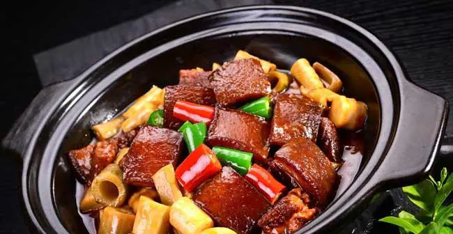 15.香辣笋干红烧肉是一道美味可口、营养丰富的家常菜,不同于一般的红烧肉口感,其独特口味倍受人们喜欢。在烹制过程中,需要注意火候和配料的搭配,方可达到完美的味道。
