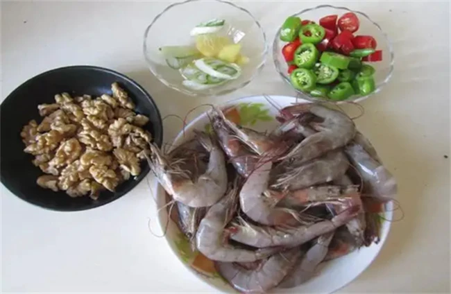 第一步准备食材。准备适量的鲜虾,将鲜虾清洗处理掉虾线,放到碗中备用。准备生姜,大葱,干辣椒,辣椒油,酱油,盐,胡椒粉,淀粉等等。