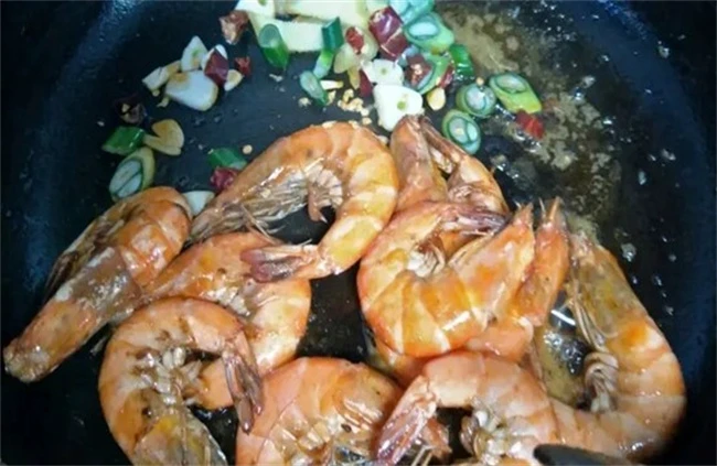 第四步炒鲜虾。配料炒出香味后,我们向锅中倒入腌制好的鲜虾,不断的进行翻炒,直到将鲜虾煎至变色两面金黄,口味比较重的,可以再向锅中加入一些准备好的辣椒油,这样炒制好的香辣油焖虾会更加的麻辣,口味也会更加好。锅中的虾煎制好后,可以再向其中加入一些酱油,让炒好的虾颜色更好看,放入少许的水,闷煮一段时间。