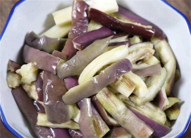 先把嫩茄子洗干净。如果想让他成熟的快一点,就切成条,长茄子从中间切开,分成4份切成大小合适的段放在盘子里面,上蒸锅蒸熟,大概需要蒸15分钟左右。我做蒸茄子是不喜欢切开的,感觉切开了里面的汤汁就会流失,影响了茄子的口感,一般都是把茄子洗干净之后整条的上锅蒸熟。蒸熟的茄子稍微凉凉戴上手套,撕成茄子条摆在盘子里面。