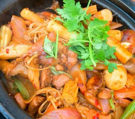 鸡公烧好后,将它盛入盘中,撒上葱花,香气四溢,让人食欲大开。
