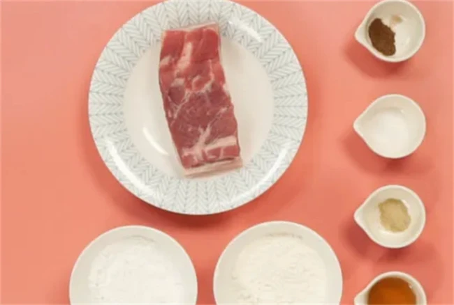 在制作小数目之前,我们需要将准备使用的食材准备齐全,准备上一块后腿肉后腿肉可以是全瘦,也可以是肥肉相间的猪肉盐,胡椒粉,料酒,老抽,生抽,红薯,淀粉,面粉,清水,鸡蛋。