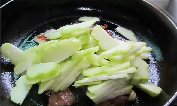 5.加入佛手瓜块,翻炒一分钟。