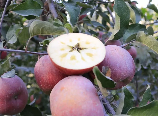 阿克苏苹果是新疆的一种特色水果,当地的日照非常的强烈,水资源比较丰富,非常适合苹果的生长,当地也种植生产出来的苹果果皮比较轻薄,颜色鲜红,果皮表面具有一定的光泽度,苹果吃起来口感鲜甜多汁,而且非常的爽脆,这种苹果的质量比较好。