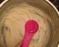 3.制作乳酪蛋糕体:将乳酪、鲜奶油、糖等混合搅拌均匀,再加入鸡蛋液,继续搅拌均匀。