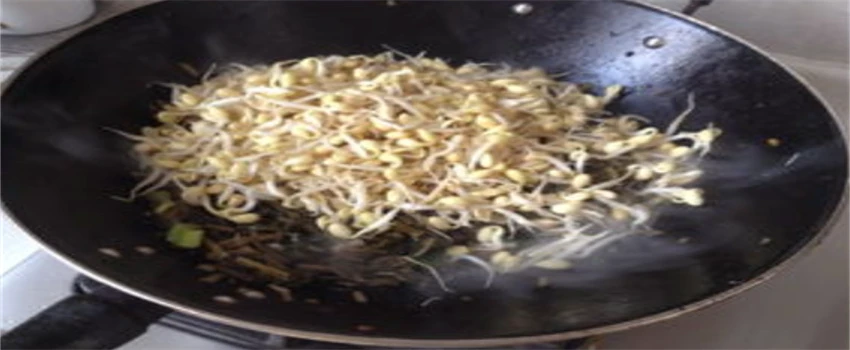 准备好炮制的黄豆倒进锅里面翻炒几下,适量的加入一点点水,要多一些,因为黄豆要炖一段时间,在黄豆比较软的时候可以放入鸡精,来回的翻炒收汁之后,一盘雪里蕻炖黄豆芽就熟了,口感不错,还是很好的一种下饭菜。
