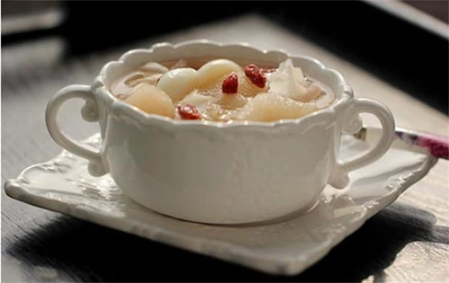 百合雪莲子梨汤具有很好的美容养颜效果,而且能提高身体的免疫力,平常经常驻点和对身体特别好,把莲子和百合提前用温水泡三个小时左右,这把雪梨用盐把外皮搓洗干净,结成大块泡发的银耳,摘掉根部,撕成小块儿,把百合雪梨莲子银耳一起放进锅里面,加入适量清水小火炖半个小时。做好之后加入一点冰糖,煮到冰糖融化盛出来晾凉就可以吃了,能够润肺养颜,每周可以喝2~3次,效果非常好。