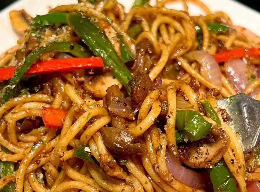 三丝炒意面做好后,趁热享用,别有一番风味。