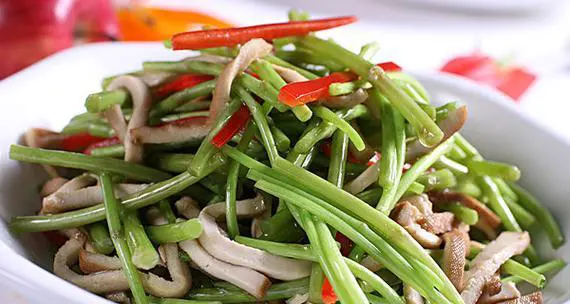 野生芦蒿炒肉丝具有清香爽口、口感鲜美的特点,是一道营养丰富的家常菜。