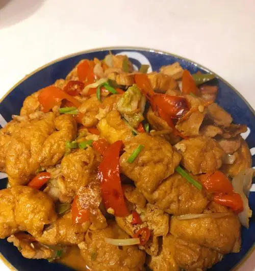 七、倒入豆腐块翻炒