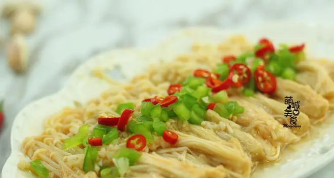 将珊瑚金针用清水煮制,加入适量调味料即可,清淡鲜美。