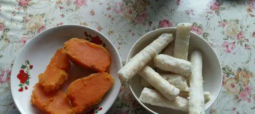 将山药和红薯分别削去表皮,然后切成小块备用。