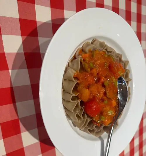 将各种蔬菜和莜面制成的面条拌炒,色彩缤纷,营养丰富,是素食主义者的首选。