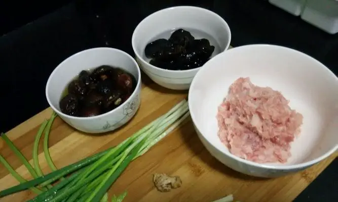 准备食材:挑选好的肉馅和香菇