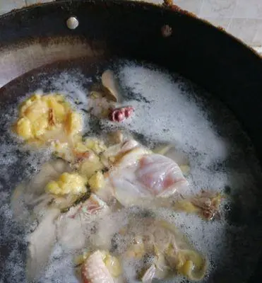 待水煮开后,将浮沫撇去。