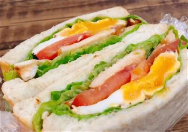 这款早餐简单易做,需要的食材也非常方便,买回来的面包片,拿出来两片放在平底锅里面稍微煎一下,然后在平底锅里面小火煎一个鸡蛋,个人感觉鸡蛋煎到八分熟最好,煎好的鸡蛋上面可以根据自己的口味挤上番茄酱,沙拉酱,也可以挤点黑胡椒盐,洗两片生菜,切上两三片西红柿,然后切两片火腿,在面包片上面铺上生菜,然后放上火腿,再铺一层生菜,再放上煎蛋,再盖上面包片营养充足的鸡蛋三明治就做好了。