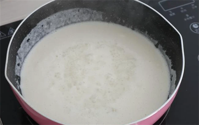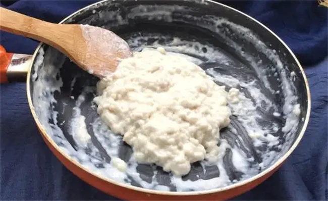 然后把奶锅清洗干净米饭和牛奶都倒进奶锅,里面用勺子把饭打碎,牛奶没过米饭大火熬煮,边煮边搅拌,牛奶是特别容易糊锅的,所以要不停的搅动,而且开锅之后也容易扑锅。在煮的时候一定不能离开。把牛奶和米饭煮到粘稠呈在碗里面,加入一点鲜牛奶,如果觉得味道不甜再加入一勺蜂蜜,桂花蜜都可以,也可以放果酱,完全是可以根据自己的喜好搭配。