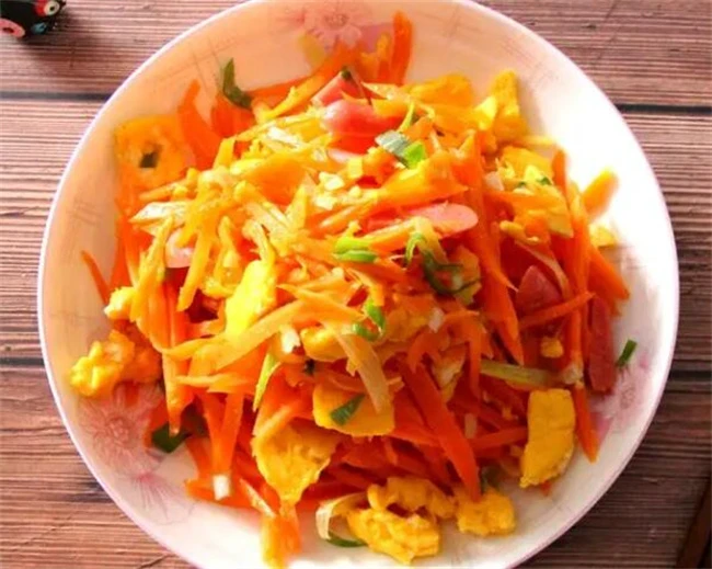 我们都知道胡萝卜里面含有丰富的胡萝卜素,能够有清肝明目的效果,通常胡萝卜都是作为配菜调味菜的颜色才使用的,今天我们来做一道简单的胡萝卜丝炒鸡蛋,味道鲜甜,而且经过油炒的胡萝卜能够最大程度的激发他的胡萝卜素,做法也特别简单。把胡萝卜洗净去皮切成细丝,打两个鸡蛋在锅里面烧油,油热以后把鸡蛋炒熟倒出来,锅里面再放上一点油烧热,放葱花爆香,然后把胡萝卜倒进去快速翻炒,胡萝卜断生以后加上适量盐,把鸡蛋倒进去炒均匀就蒸出锅了。