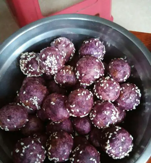 将蒸熟的馅料取出,待凉后搓成小圆球状备用。