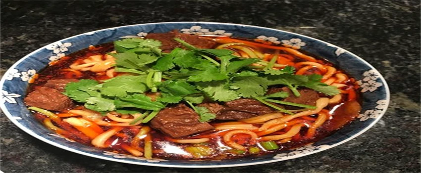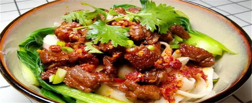 这时候在锅里面放入适量的清水,将其烧开之后放入干面条,然后需要用筷子搅拌均匀。当面条煮熟之,后将其捞出放到碗当中。小伙伴们需要注意,碗里面可以放两勺的面汤,再放入一点点猪油,面汤当中可以放一点小青菜,适当的烫一下,将青菜捞出。起锅烧油,放入适量的油将其烧开,我们将青菜以及切好的牛肉放到面条上面铺好。