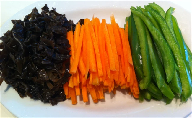 肉丝上面加入半个鸡蛋清,适量食用盐,一点料酒,白胡椒粉,淀粉抓拌均匀,让肉丝完全上浆之后再倒上点食用油抓匀。 把肉丝放在一旁腌制,趁这个时间把胡萝卜切成细丝,青椒木耳,都切成丝装在盘子里面备用。大葱切成葱花,大蒜切成片。锅里面加入适量食用油,把肉丝加进去快速炒散,变色之后长出来放在盘子里面,再加入适量食用油,把刚刚切好的胡萝卜丝,青椒丝,还有木耳放进去,大火快速炒至断生和肉丝放在一起。