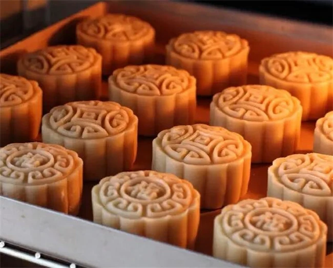 饼皮放在手心里捏出大小合适的坑,然后把五仁馅包进去,用模具压出花型。烤箱调好温度,把月饼放进去烤几分钟,表皮发干之后再刷上一层蛋液,再进入烤箱,180度烤10分钟,五仁月饼就做好了。