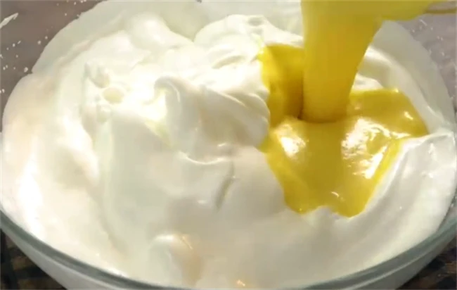 先做面粉糊,把牛奶玉米油和15克白糖加入一个容器,里面快速较大均匀,让糖和油牛奶充分混合。然后用筛子把低筋面粉筛到牛奶里面,这次行搅拌均匀。注意不能顺着一个方向搅拌,不然面粉上劲,做出来的蛋糕口感不好,容易分层。另外准备一个无水无油的容器,把鸡蛋蛋清和蛋黄分离,蛋黄放在面粉糊里面。继续用最字形的手法搅拌均匀。