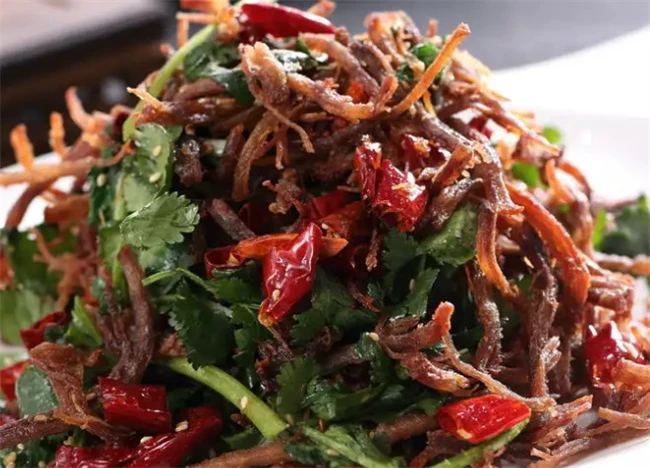 每个厨师做干煸牛肉丝的方法都不一样。但整体离不开把牛肉炒干炒香的中心思想。做干煸牛肉丝可以使用,牛腿肉也可以使用牛脊肉相对来说,牛脊肉比较嫩,牛腿肉更有嚼劲一些,看自己的喜好,喜欢吃哪种口感就买哪个部位的肉。所用的配料比较简单,适量花椒,干辣椒,盐,糖,白胡椒粉生抽,适量白芝麻。一把小香芹。葱花,姜末,蒜末。
