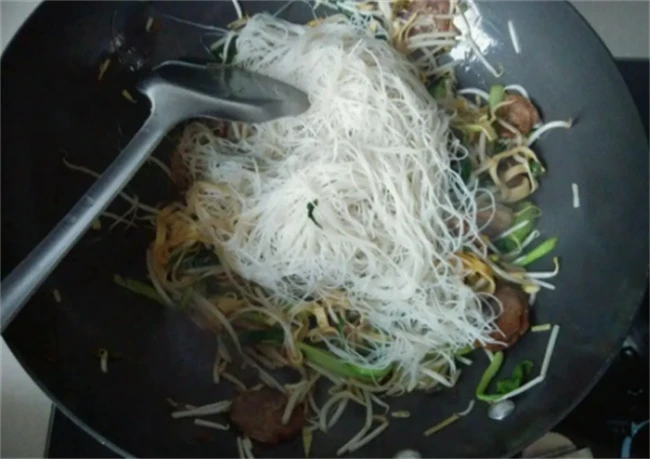 家里炒米粉的时候,我们也可以搭配不同的配菜,如果不想吃白菜,我们可以加入胡萝卜丝以及火腿丝,这样制作出来的炒米粉味道也非常的好。