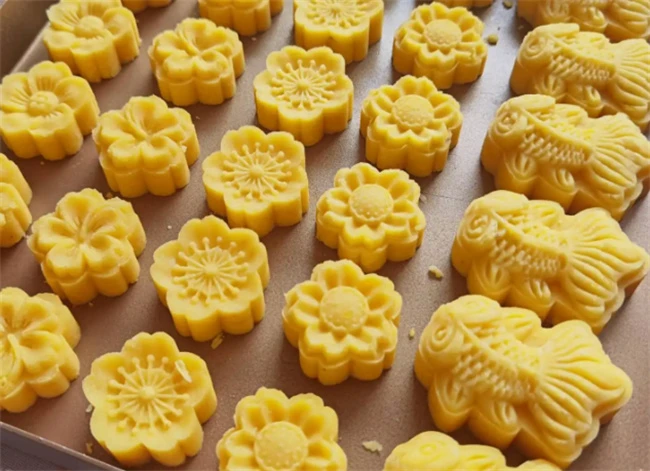 蒸熟的绿豆放在盆子里面,用粗一点的擀面杖开始按压,压成泥之后加入牛奶和白砂糖再用绞肉机打一下,这样更细腻。里面放入适量黄油或者橄榄油,用小火稍微加热一下放入。好的豆泥小火不停的翻炒,直到不粘锅不粘铲子就可以了。很好的绿豆泥呈出来,用保鲜膜盖上防止豆泥风干。分成40克左右一个的剂子,如果想吃薄一点的30克左右,就可以在模具上刷上橄榄油,这样比较好脱模。