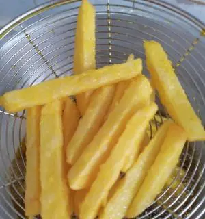 炸制时需要注意油温的掌握,温度过高易导致糊焦,温度过低则会导致薯条油腻。